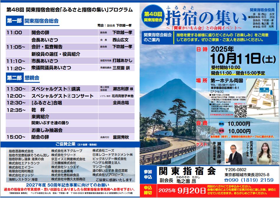 2025/9/3 2025/10/11(土)関東指宿会「ふるさと指宿の集い(関東かいもん会との合同イベント)」開催のお知らせ;